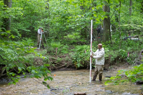 Fish and Wildlife Service employees surveying and assessing rivers and streams