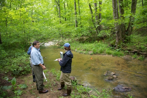 Fish and Wildlife Service employees surveying and assessing rivers and streams