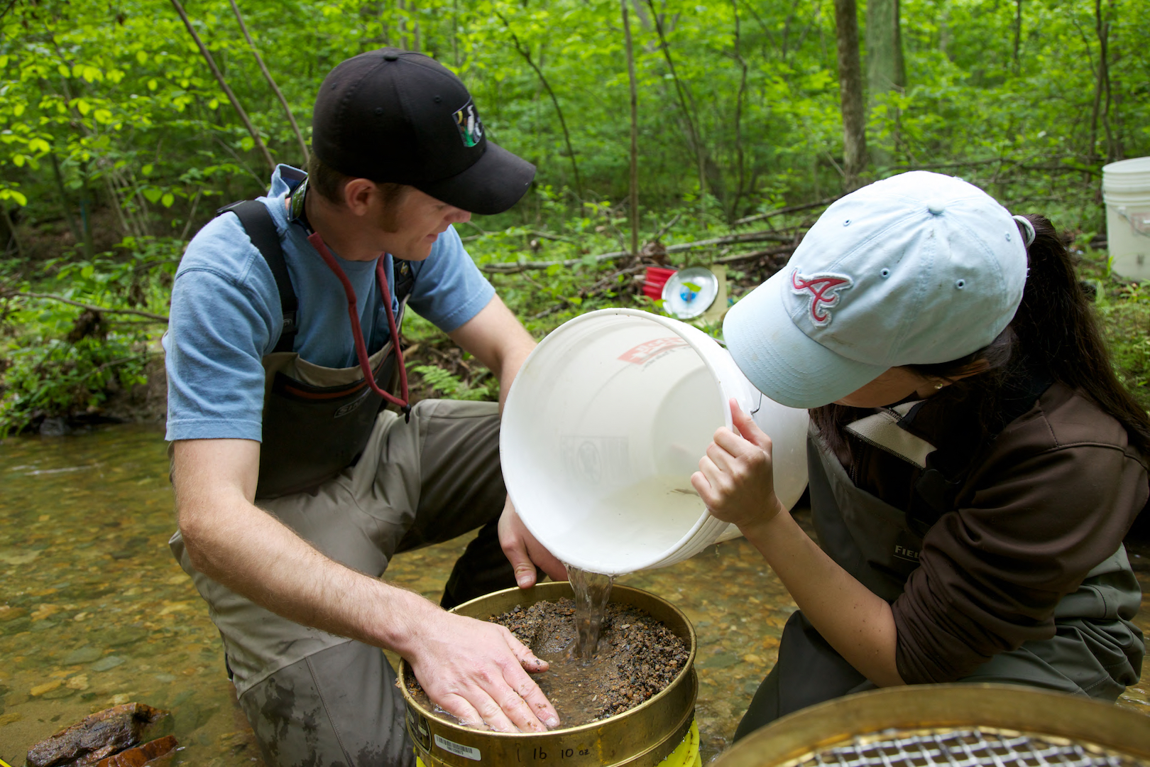 Fish and Wildlife Service employees surveying and assessing rivers and streams