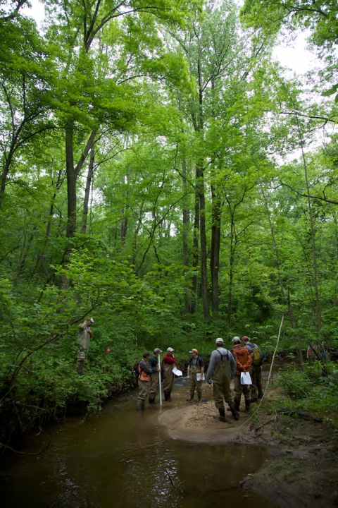 Fish and Wildlife Service employees surveying and assessing rivers and streams