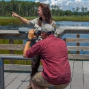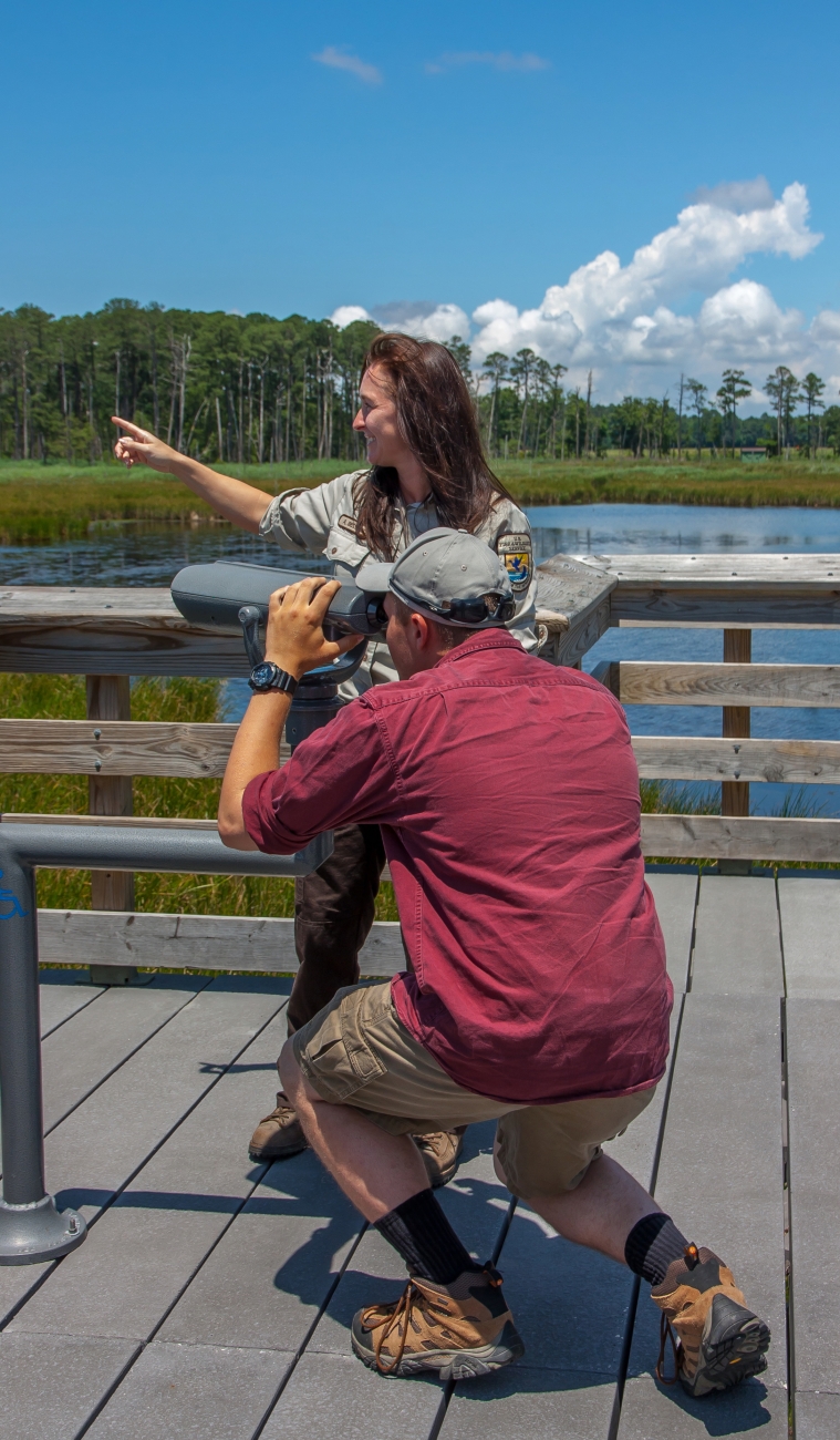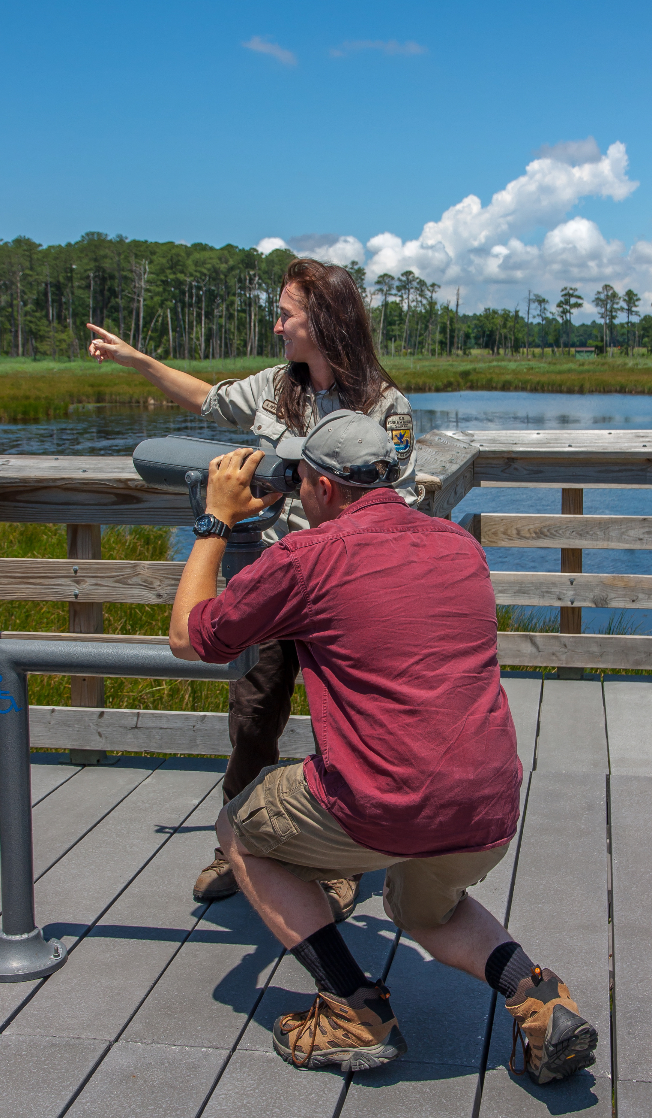 Fish and Wildlife Service staff talks to group of high school students on viewing platform