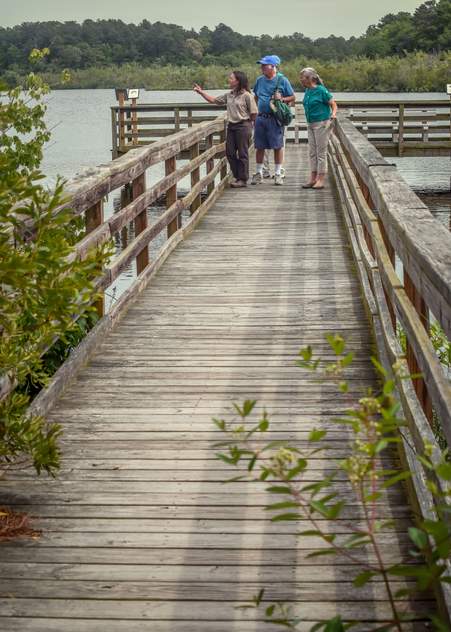Fish and Wildlife Service visitor services staffer shows wetland to visitors