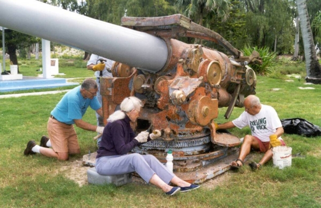 Volunteers cleaning gun emplacement at Midway Atoll National Wldlife Refuge.For more information about this refuge visit http://www.fws.gov/midway/intro/default.htm