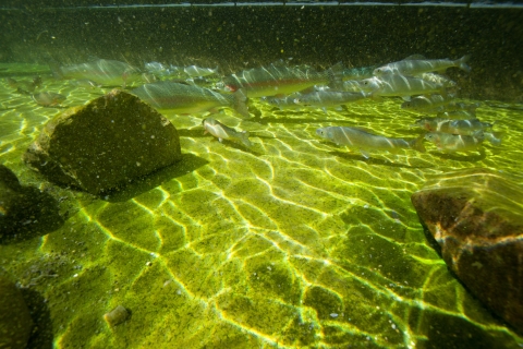 Grayling, Rainbow trout, Cutthroat trout in display pond.