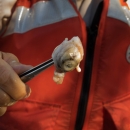 A salmon eyeball that will be used to collect biological data. Credit: Laura Mahoney/USFWS