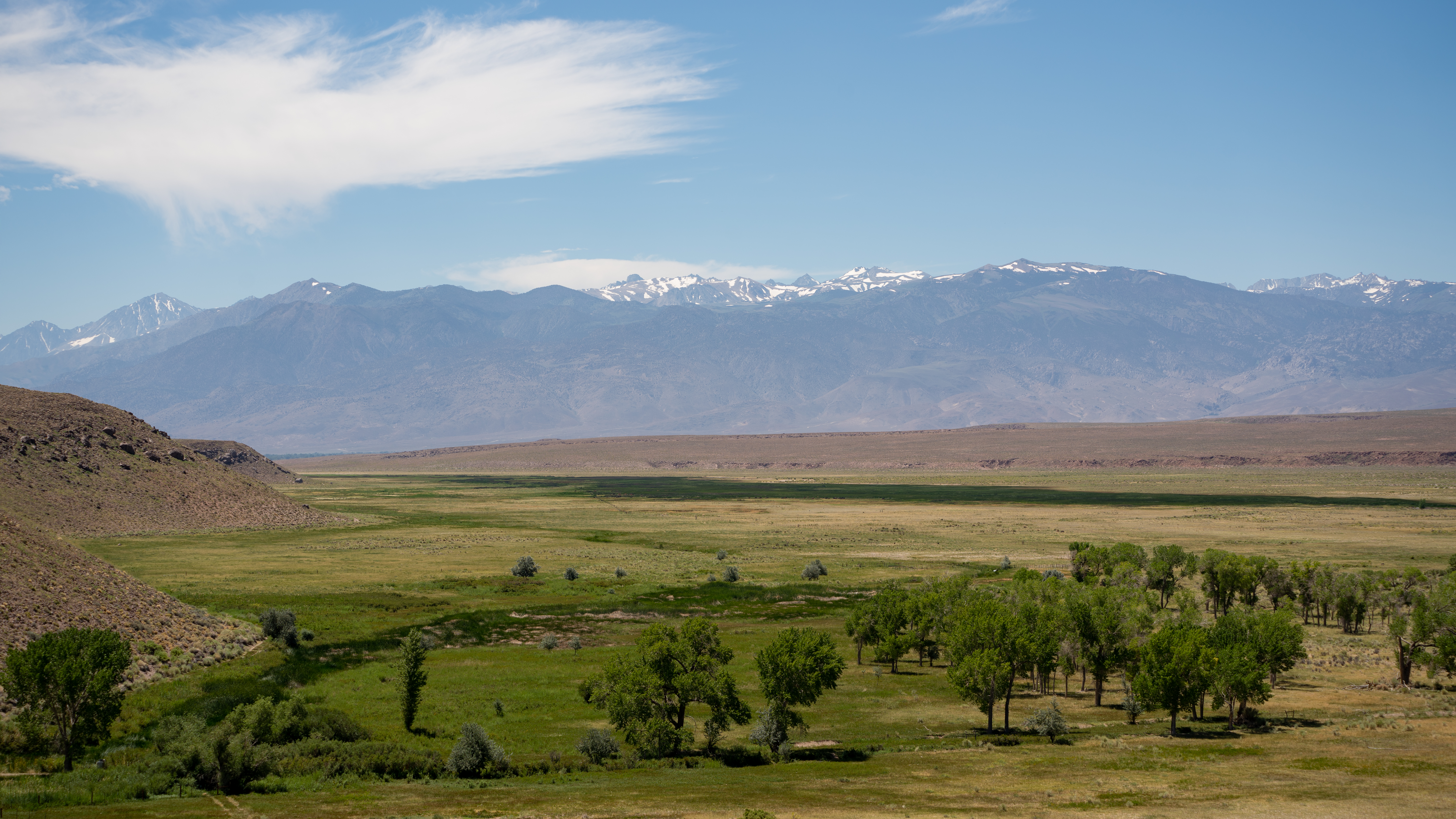 A view looking down into Fish Slough facing the eastern Sierra. Fish Slough milkvetch is federally listed as threatened. This plant is in the legume family and is found along 6 mile stretch of salt flats near Bishop, CA known as Fish Slough. This milkvetch grows in a desert wetland. Climate change and competition from nonnative plants pose challenges to recovery. Credit: Nathan Hurner/USFWS