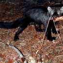 A fisher is photographed at night while trying to take bait. Fishers are opportunistic predators that hunt exclusively in forested habitats where prey is abundant and vulnerable to capture. Their diverse diet includes birds, porcupines, snowshoe hare, squirrels, mice, shrews, voles, reptiles, insects, carrion, vegetation, and fruit. Their name is misleading since fishers do not actually catch fish. The name may have come from early European settlers who noted the fisher's similarity to the European polecat which was variously known as a fitchet or fitchew.