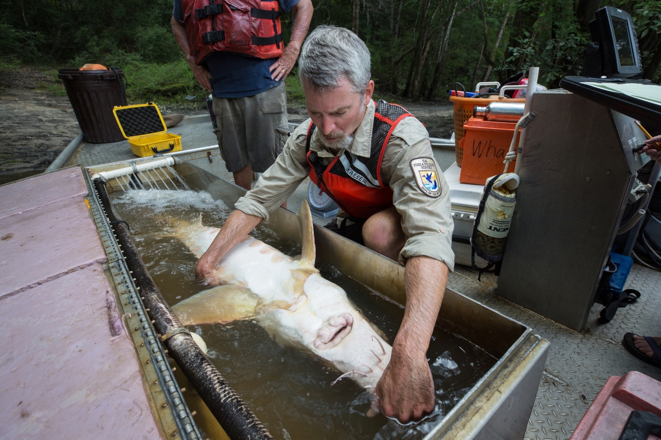 The Gulf sturgeon lives in the northern Gulf of Mexico, bays, estuaries and in major rivers in Florida, Alabama, Mississippi and Louisiana. The gulf sturgeon spends most of the year in freshwater, where it reproduces, and migrates to saltwater in the fall.