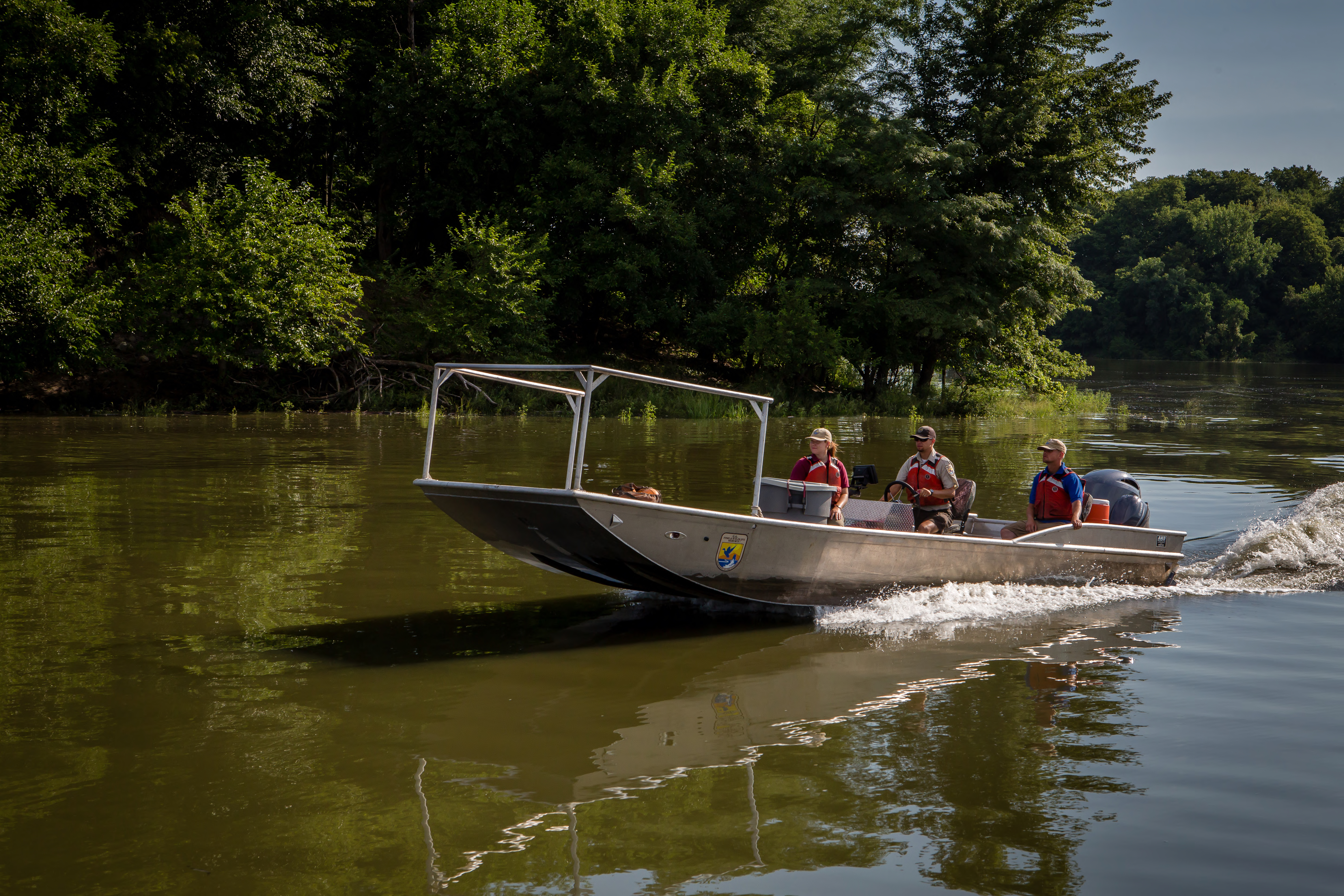 U.S. Fish and Wildlife Service biologists searching for invasive carp on the Illinois River