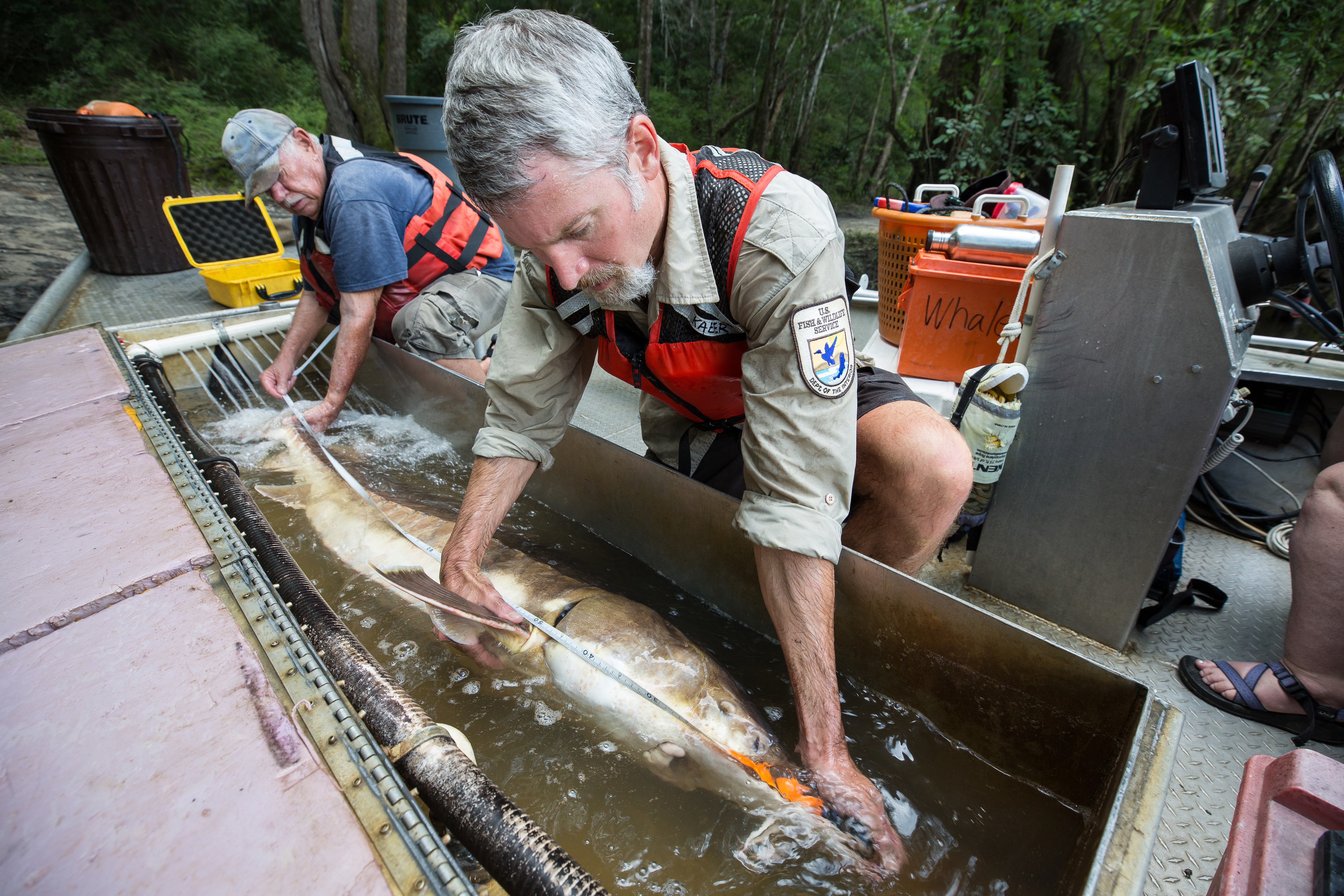 The Gulf sturgeon lives in the northern Gulf of Mexico, bays, estuaries and in major rivers in Florida, Alabama, Mississippi and Louisiana. The gulf sturgeon spends most of the year in freshwater, where it reproduces, and migrates to saltwater in the fall.