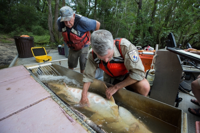 The Gulf sturgeon lives in the northern Gulf of Mexico, bays, estuaries and in major rivers in Florida, Alabama, Mississippi and Louisiana. The gulf sturgeon spends most of the year in freshwater, where it reproduces, and migrates to saltwater in the fall.