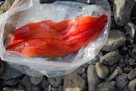Freshly caught silver salmon.