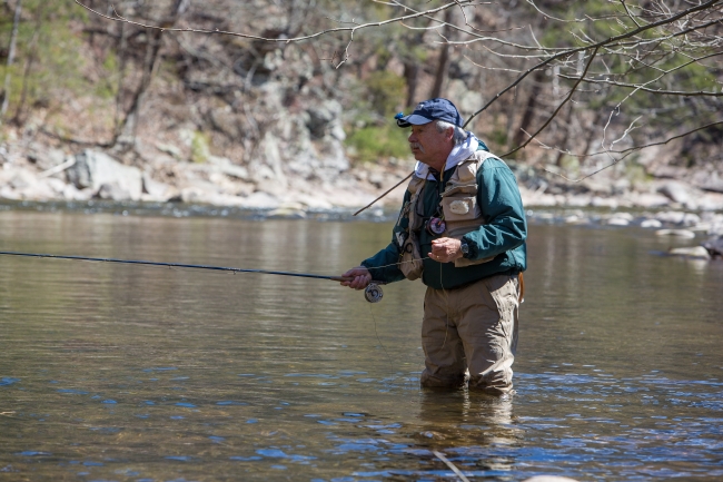 Fisherman fly fishing in the Seneca Creek.