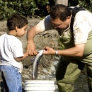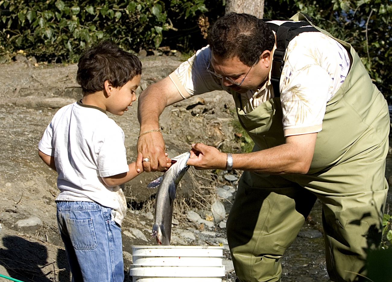 This is a picture of a man showing a child how to properly hold a fish. Alaska is a land of awe-inspiring beauty and fish and wildlife spectacles, and the Kenai National Wildlife Refuge is a microcosm of all this wonderful state has to offer.
