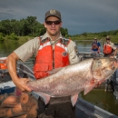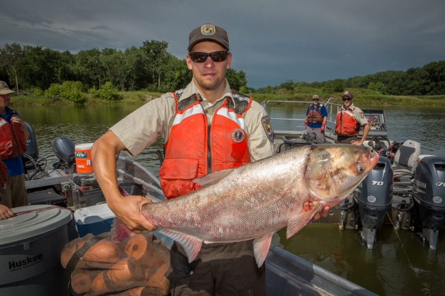 U.S. Fish and Wildlife Service fishery biologist with large Silver carp