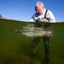 Fishery biologist surveys a American paddlefish