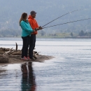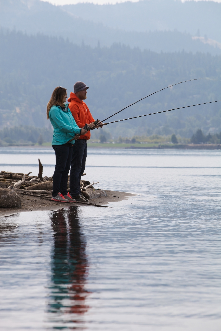 Anglers on shore fish for Fall Chinook salmon on the Columbia River. Pacific Northwest Fisheries.