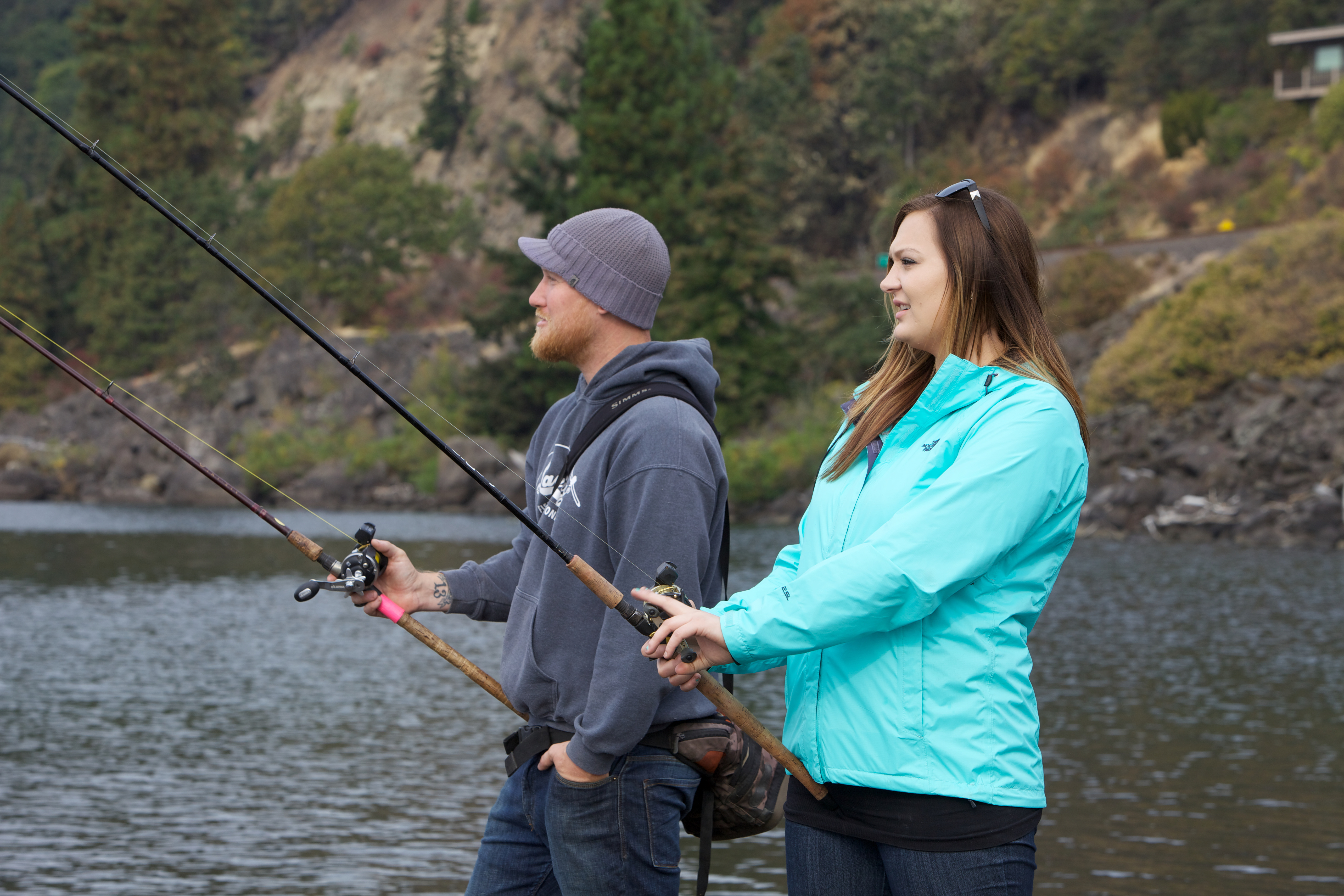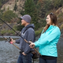 Anglers on shore fish for Fall Chinook salmon on the Columbia River. Pacific Northwest Fisheries.