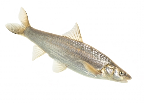 The flathead chub is a slender, silvery minnow with small eyes, a large, slightly oblique mouth and sickle-shaped, pointed, perctoral fins. Head is wedge-shaped and mouth has small barbel at corner. It is a species of concern for the state of Missouri.