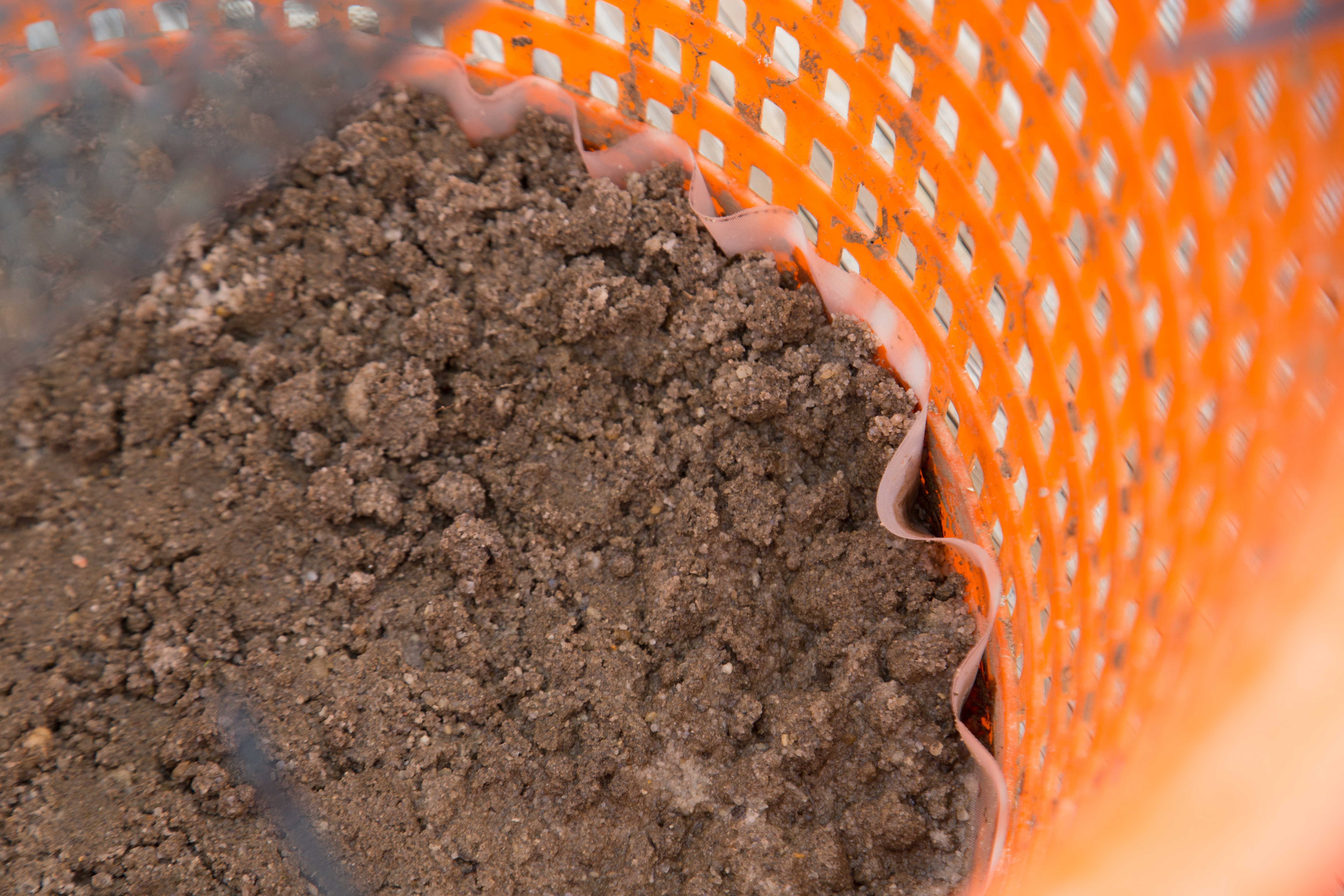 Floating basket. A fine layer of sand is placed on the 200 micron mesh to allow the mussels to burrow. Freshwater mussel culture