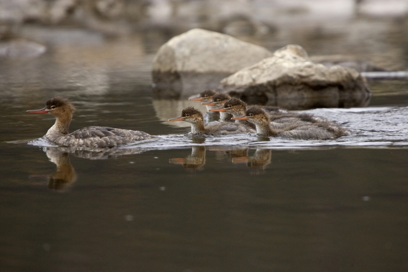 This picture shows a Common Merganser with flock at the refuge. The Arctic National Wildlife Refuge, a vast and beautiful wilderness, is an intact continuum of six different ecological zones spanning some 200 miles north to south. Such a diverse spectrum of habitats and associated fish and wildlife populations within a single conservation area is unparalleled in the circumpolar north.