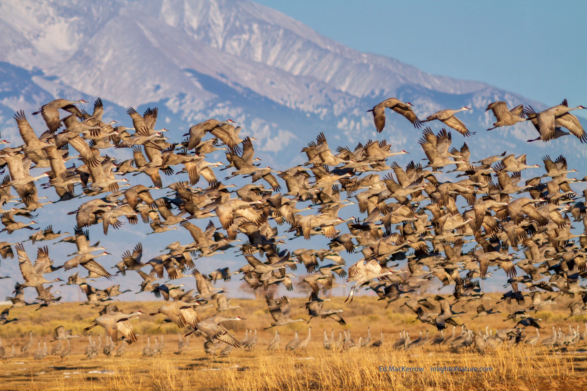 Flock of Sandhill Cranes lifting off Monte Vista NWR