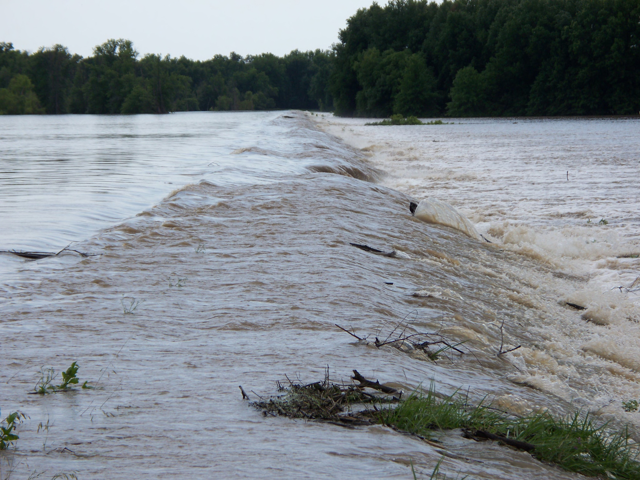 Flood waters spilling out over the bank