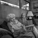 Florence, with her daughter Ginny, flips through a binder of plans, flyers, photos and news releases from her early conservation work. Credit: Jon Myatt/USFWS