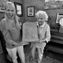 Ginny and Florence display one of the original Safeway bags from the 1980s "Save the Bay" campaign that Florence and her team of organizers began. Credit: Jon Myatt/USFWS
