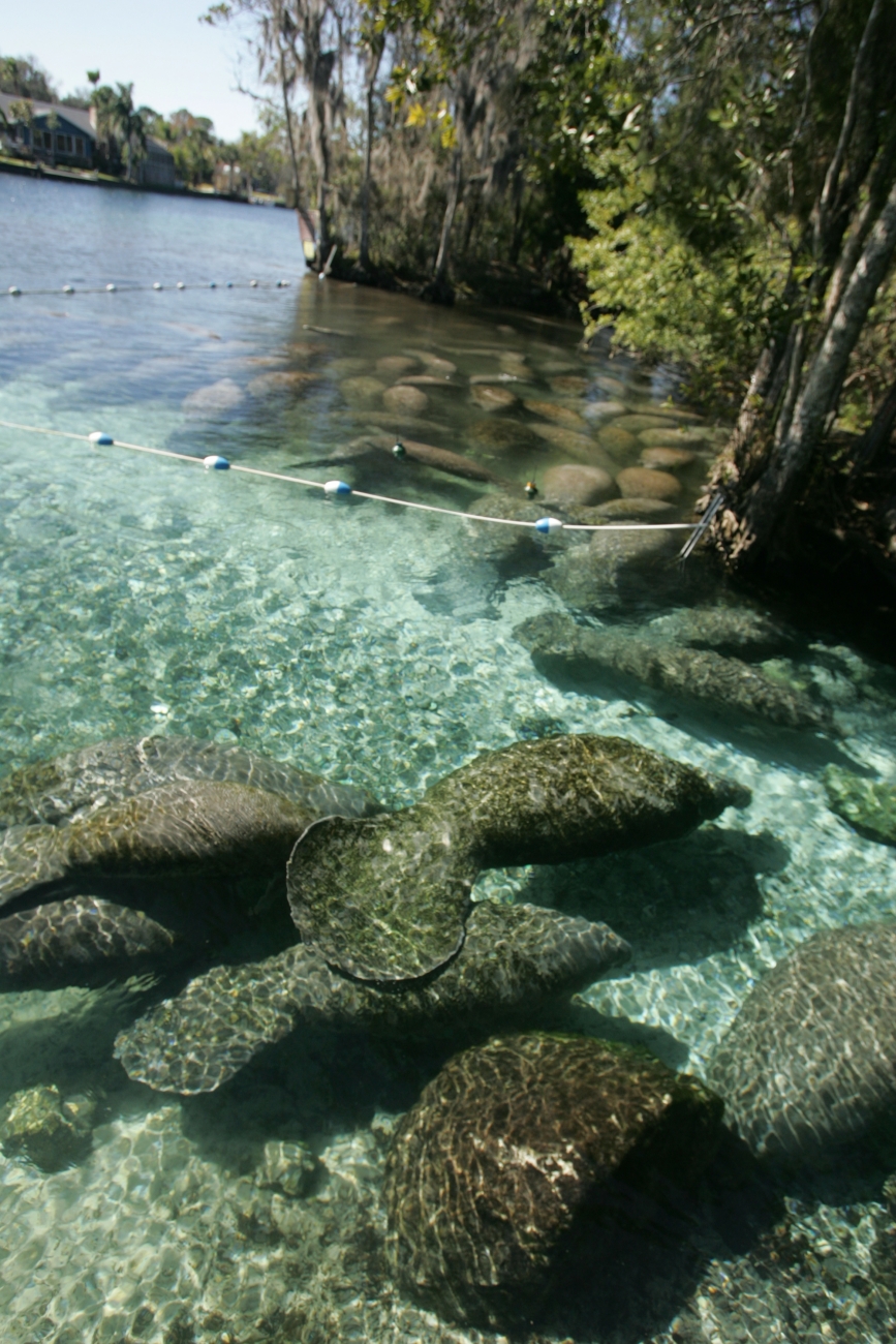 Three Sisters Springs in the Crystal River, Florida area provides warm-water refuge for the endangered Florida manatee.
