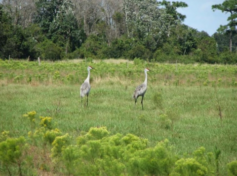 Florida Sandhill cranes in a grassy area at Camp Lonesome Ranch.