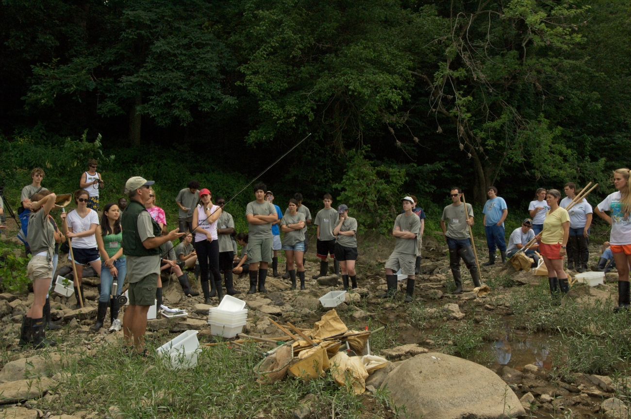 U.S. Fish and Wildlife Service employee, Mark Madison, gives a fly fishing demonstration to a group of Student Climate and Conservation Congress students (SC3). The SC3's mission is to empower outstanding student environmental leaders with the skills, knowledge and tools necessary to address natural resource challenges and improve sustainability in their schools and communities.