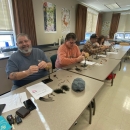 Participants of the 2023 Beginner's Fly-tying Workshop tying their first woollyboogers.