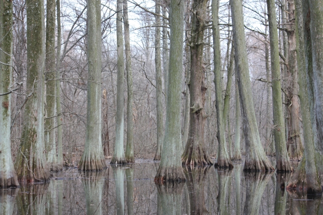 A cypress break in a wetland at Reelfoot National Wildlife Refuge in Tennessee. Forested wetlands provide a haven for wintering waterfowl.
