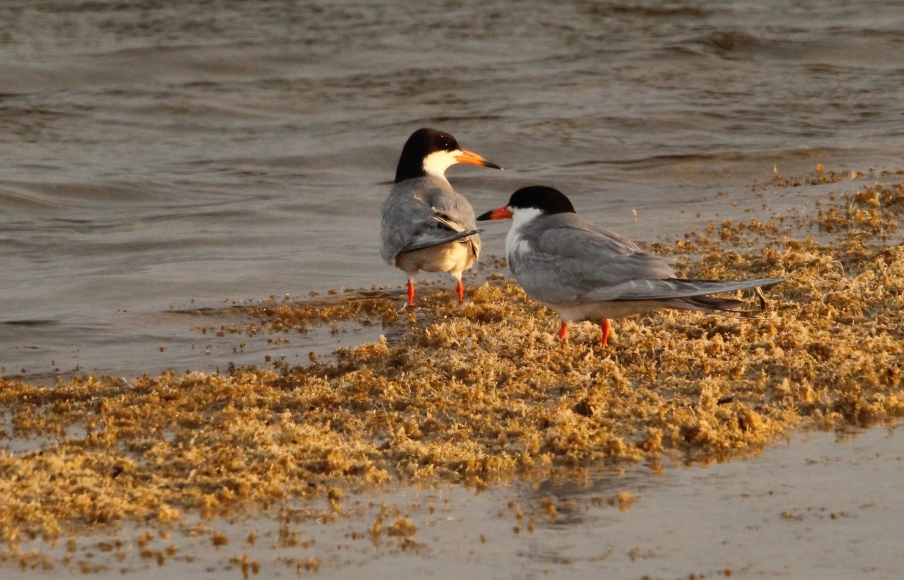Two Forster's Terns rests on the shoreline of a shallow wetland at the Fish Springs National Wildlife Refuge, Utah.