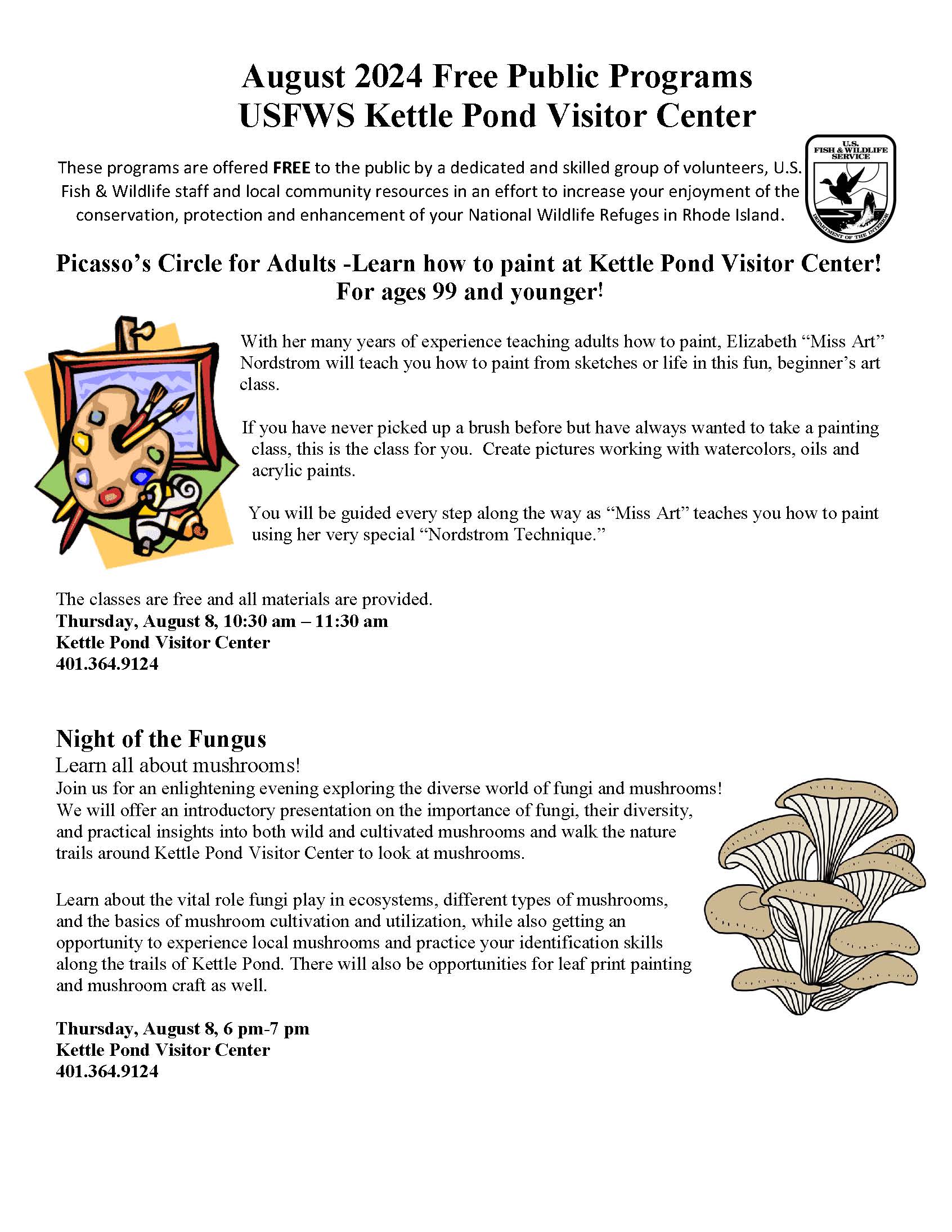 Free Public Programs in August 2024 at Kettle Pond Visitor Center