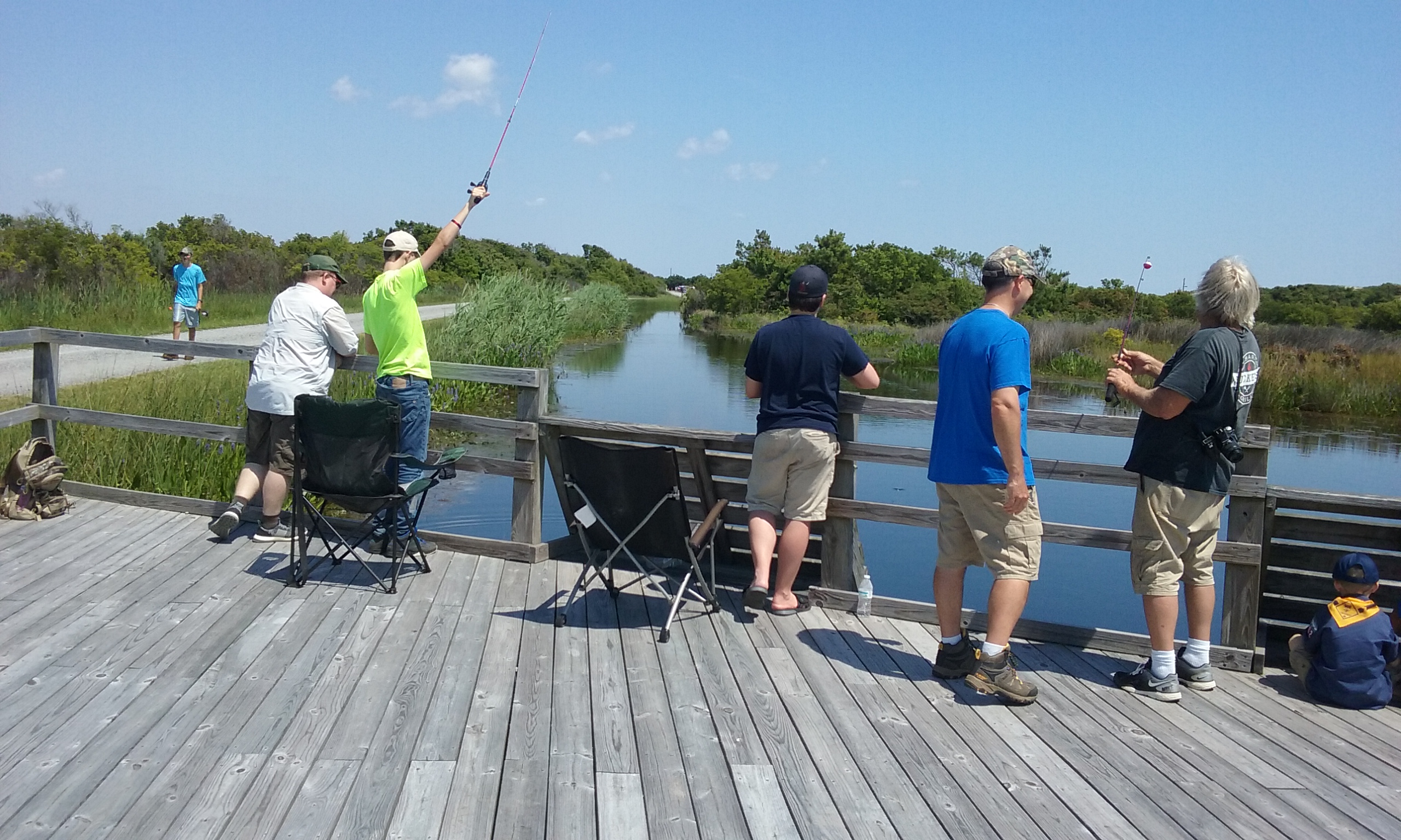 Anglers fish in a freshwater pool at Back Bay National Wildlife Refuge.
