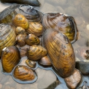 Mussels displayed are from the Allegheny River: Lampsilis ovata , Fat Pocketbook Ptychobranchus fasciolaris, Kidneyshell Actinonaias ligamentina,Mucket Pleurobema clava, Clubshell