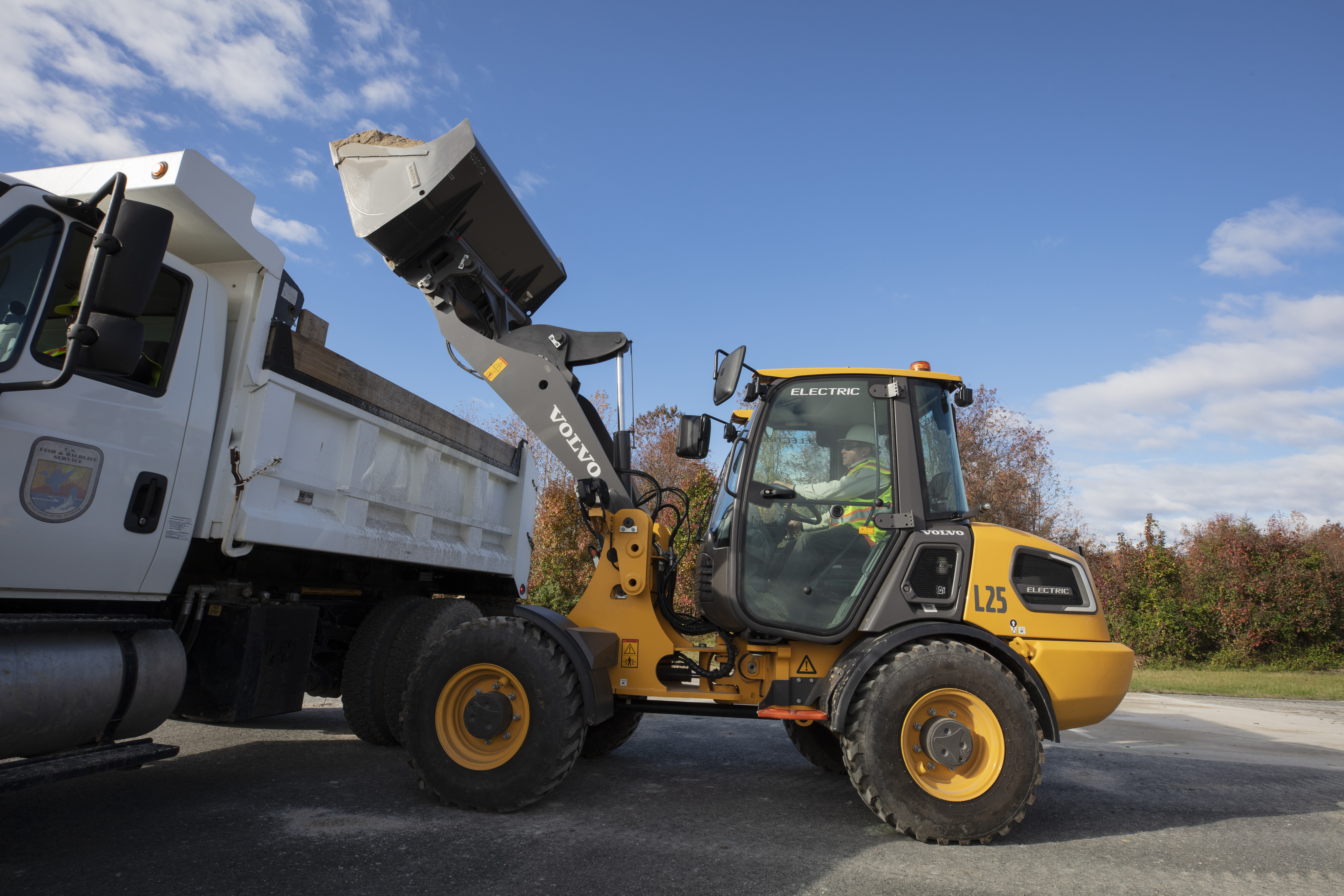 Front-end loader dumping dirt into dump truck at Occoquan Bay National Wildlife Refuge