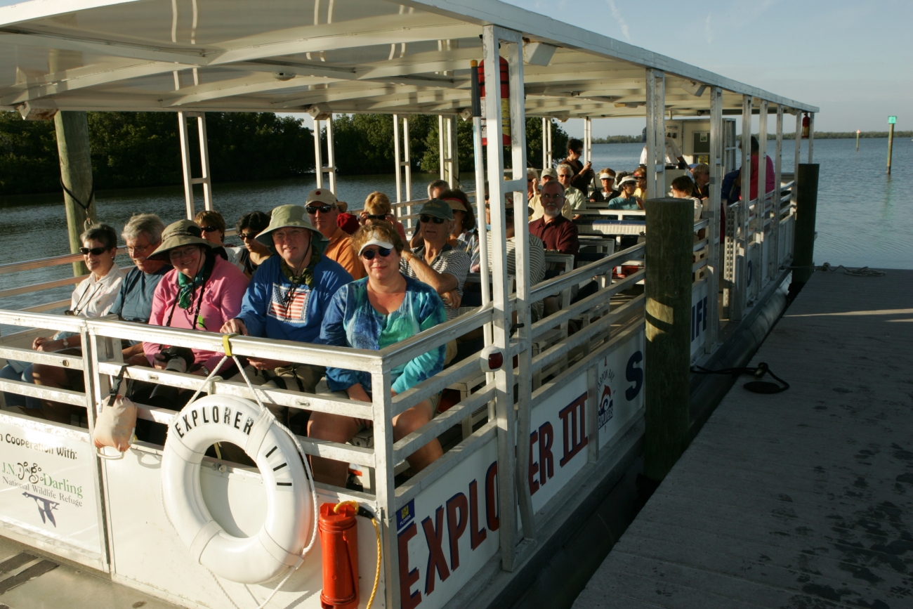 These passengers are enjoying the thrills of being in the front row of this pontoon boat tour of the refuge. One of the many activities offered.