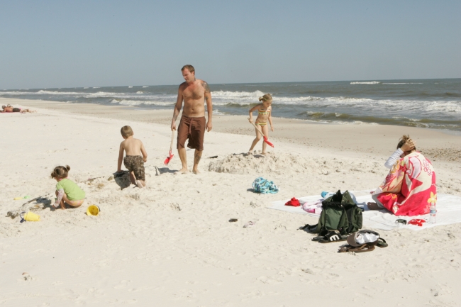 A family enjoys a perfect day at the beach.
