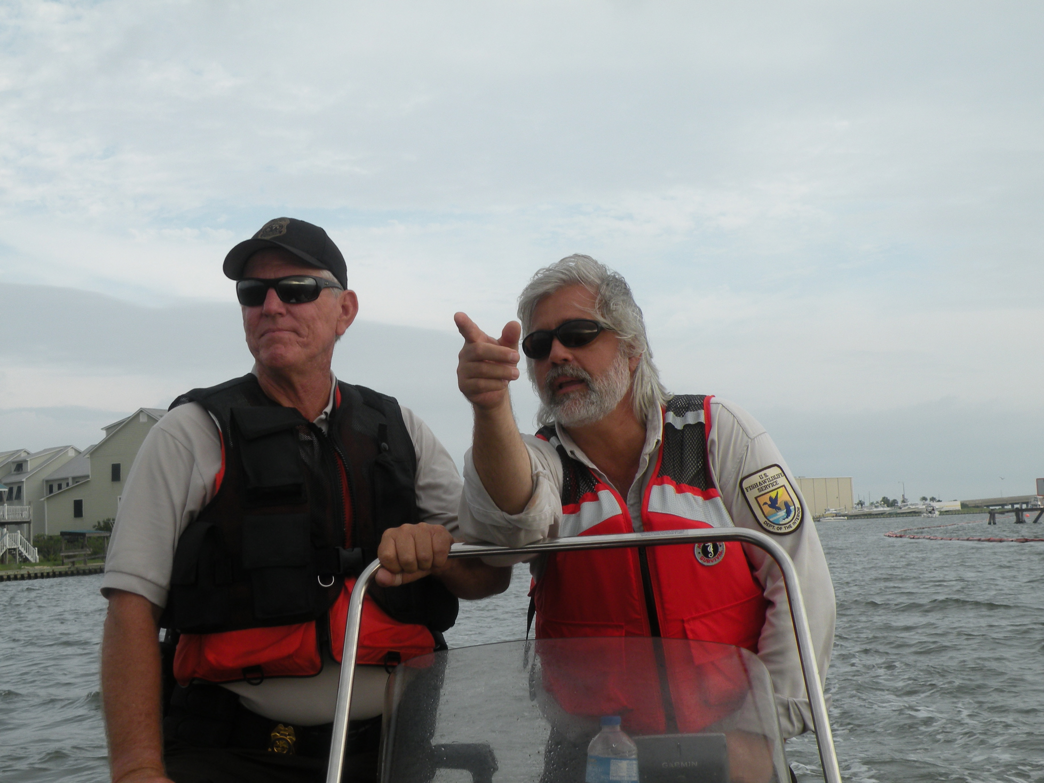 July 1, 2010 Gulf Shores, AL - Most marsh areas are protected by boom. Since the spill began, Bon Secour Maintenance worker Jerry Dunn routinely checks the shoreline/boom three times a week. Photo by Bonnie Strawser.