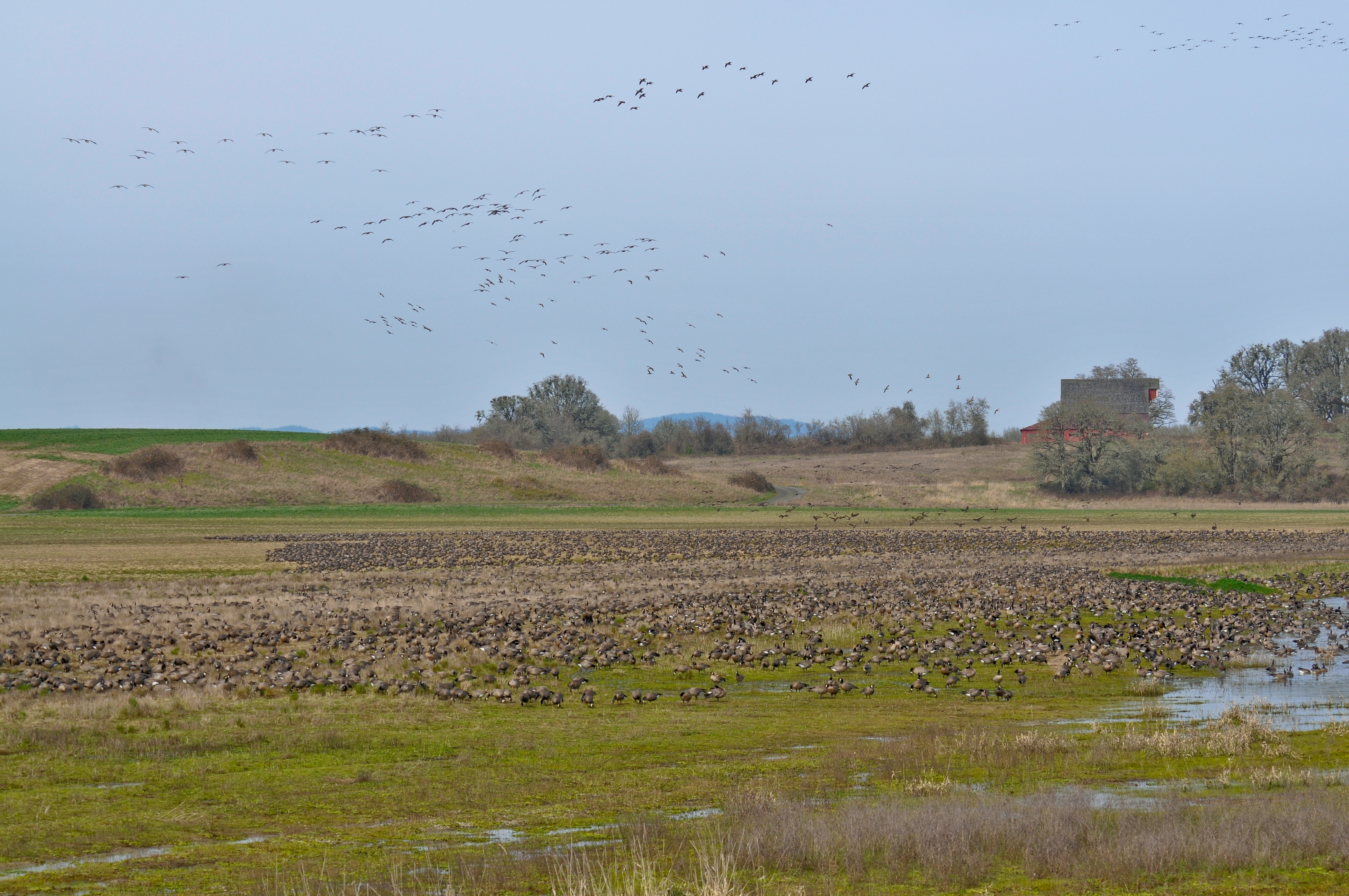 Canada Geese, Cackling Geese, and other waterfowl on an agriculatural field