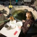 Geneticist collecting tissue from trout