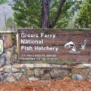 The Greers Ferry National Fish Hatchery sign located at the entrance to the facility.