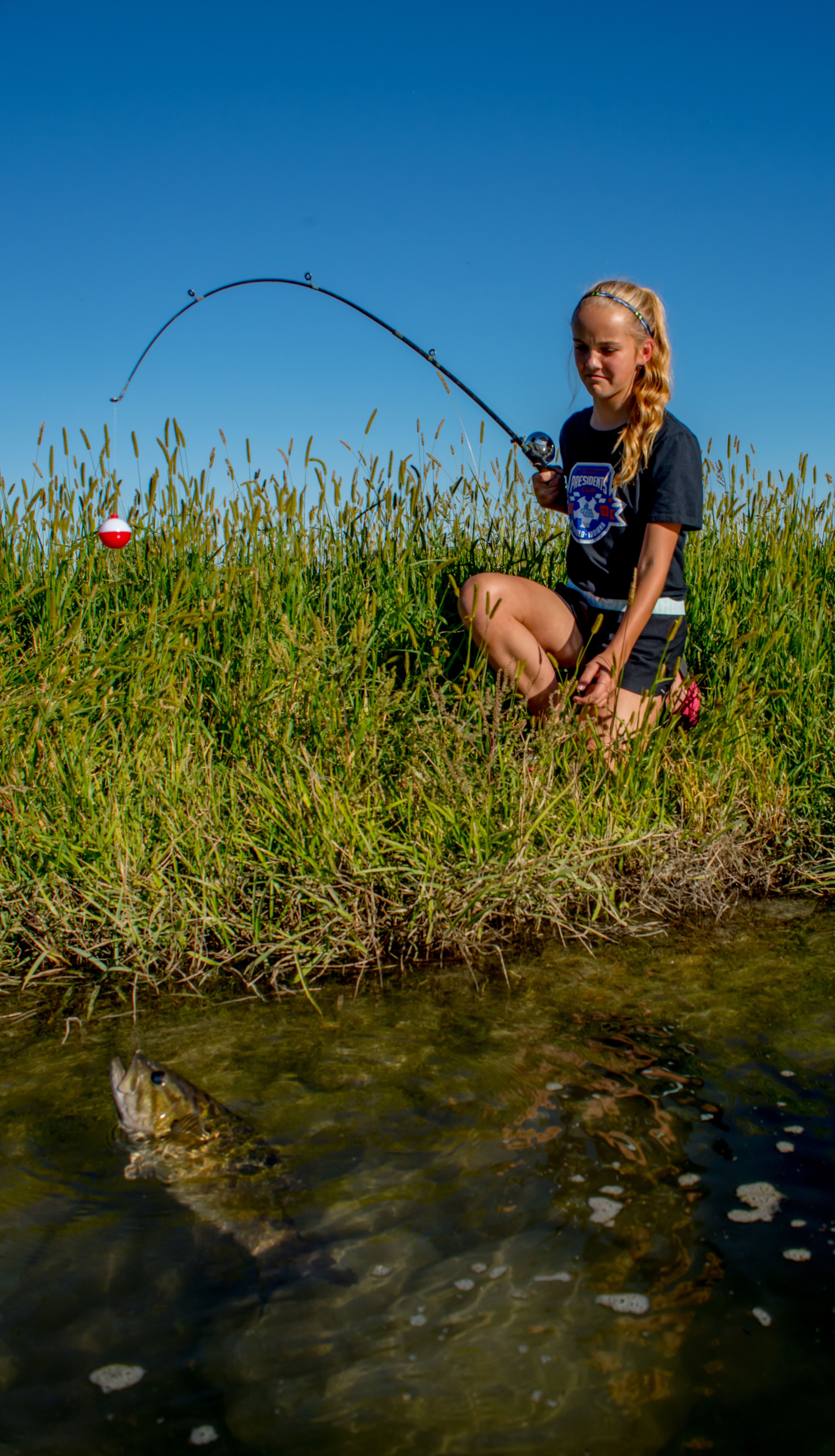 Girl catches smallmouth bass