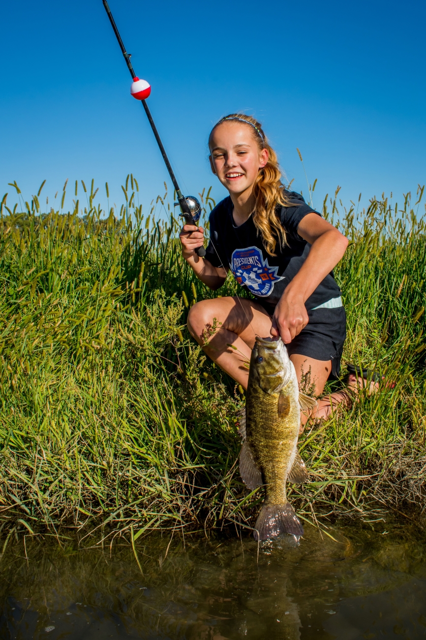 Girl catches smallmouth bass