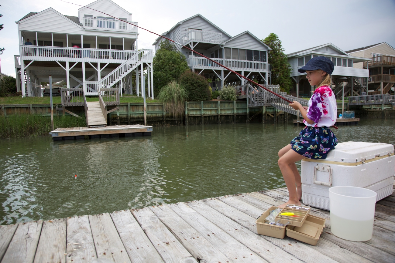 Girl fishing from dock