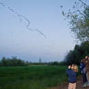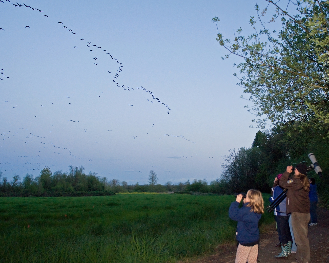 Girl Scouts watch geese at dusk