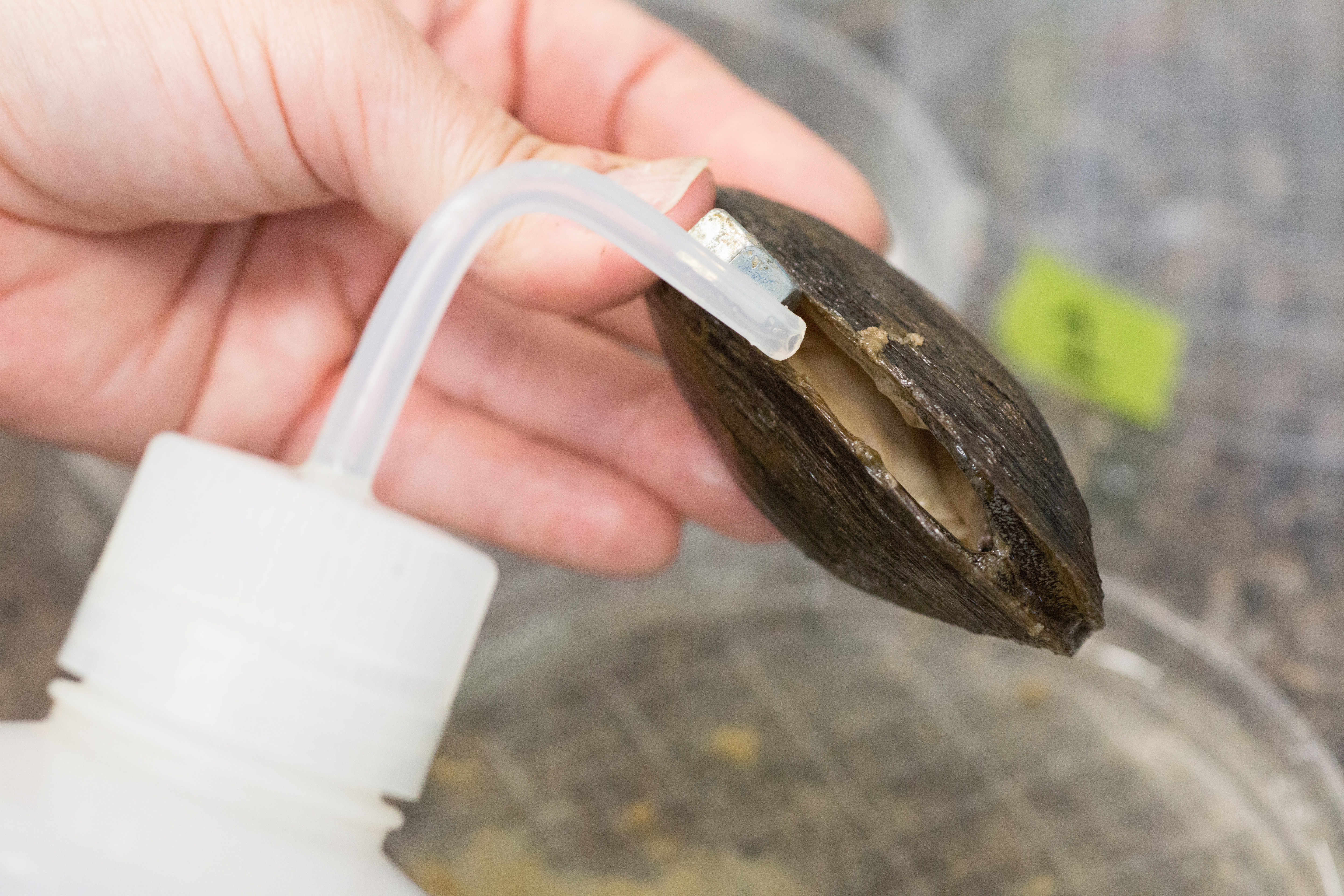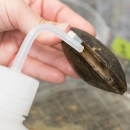The remaining glochidia being removed from the interior of the shell using a squirt bottle. Photo: Ryan Hagerty, USFWS.